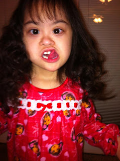 When bedtime came we took down the twists. That left her with some beautiful "curly" hair. I really wanted a picture (ok well maybe more than "a" picture). Julianne was feeling especially ornery too.